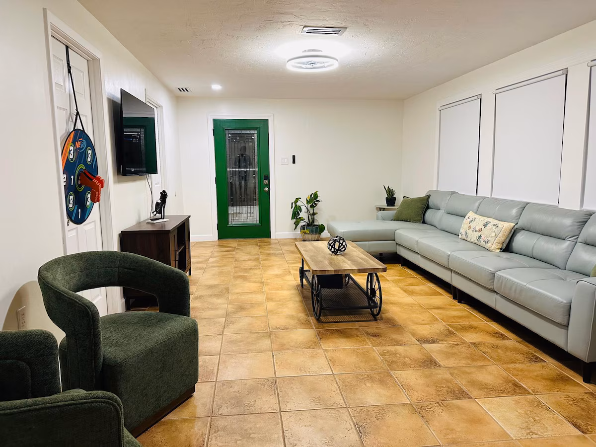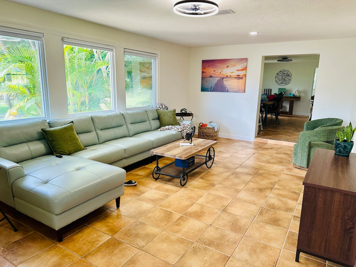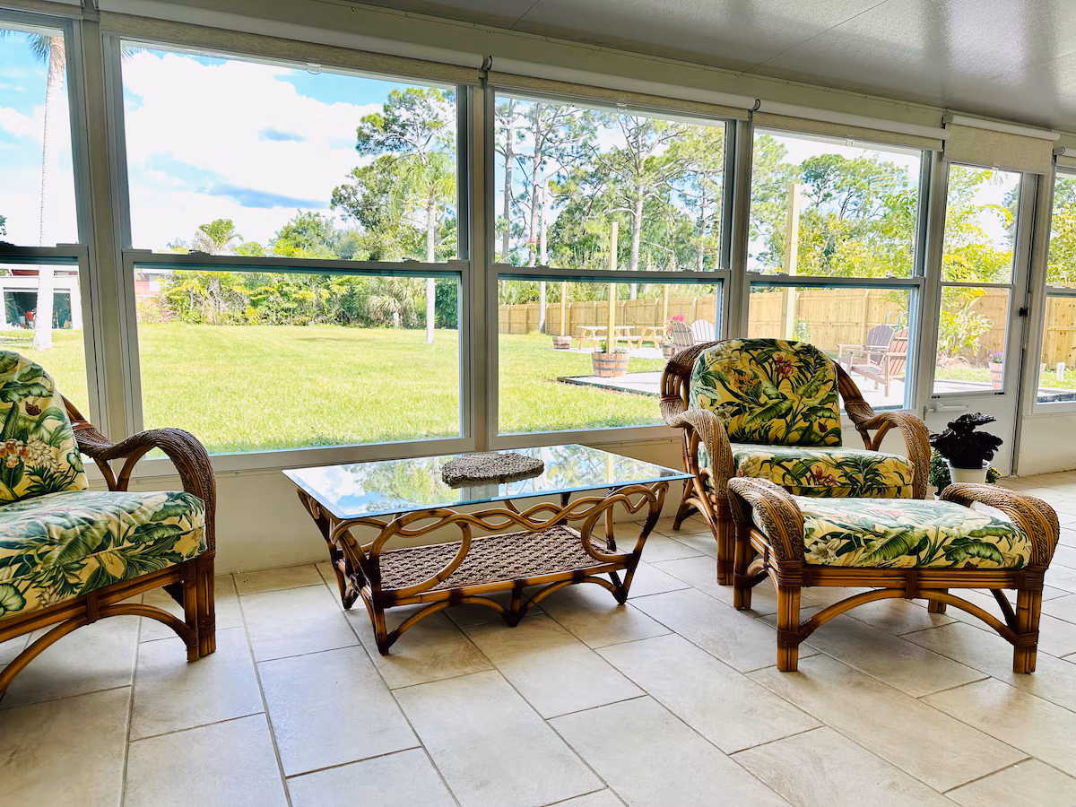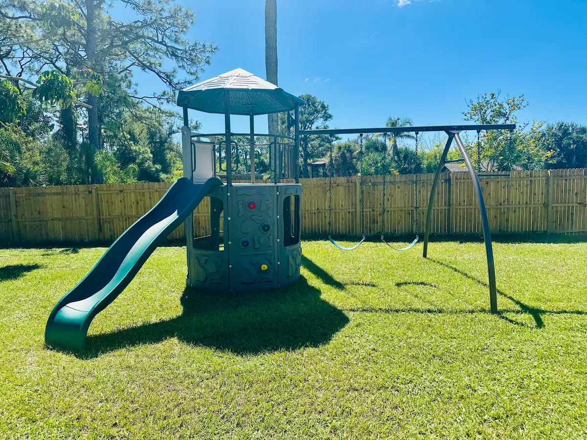 Linda’s Beach House in sunny Venice! Just 3 minutes from the beach, this 4-bedroom home is the perfect spot to kick back and relax. Families, couples, and even grandparents will love the big backyard with a playground, picnic area, BBQ, and fireplace. Inside, the sunroom is a cozy place to sip your morning coffee while looking out at the green field. With plenty of space and flexible sleeping options, it’s easy to settle in and make lasting memories here.