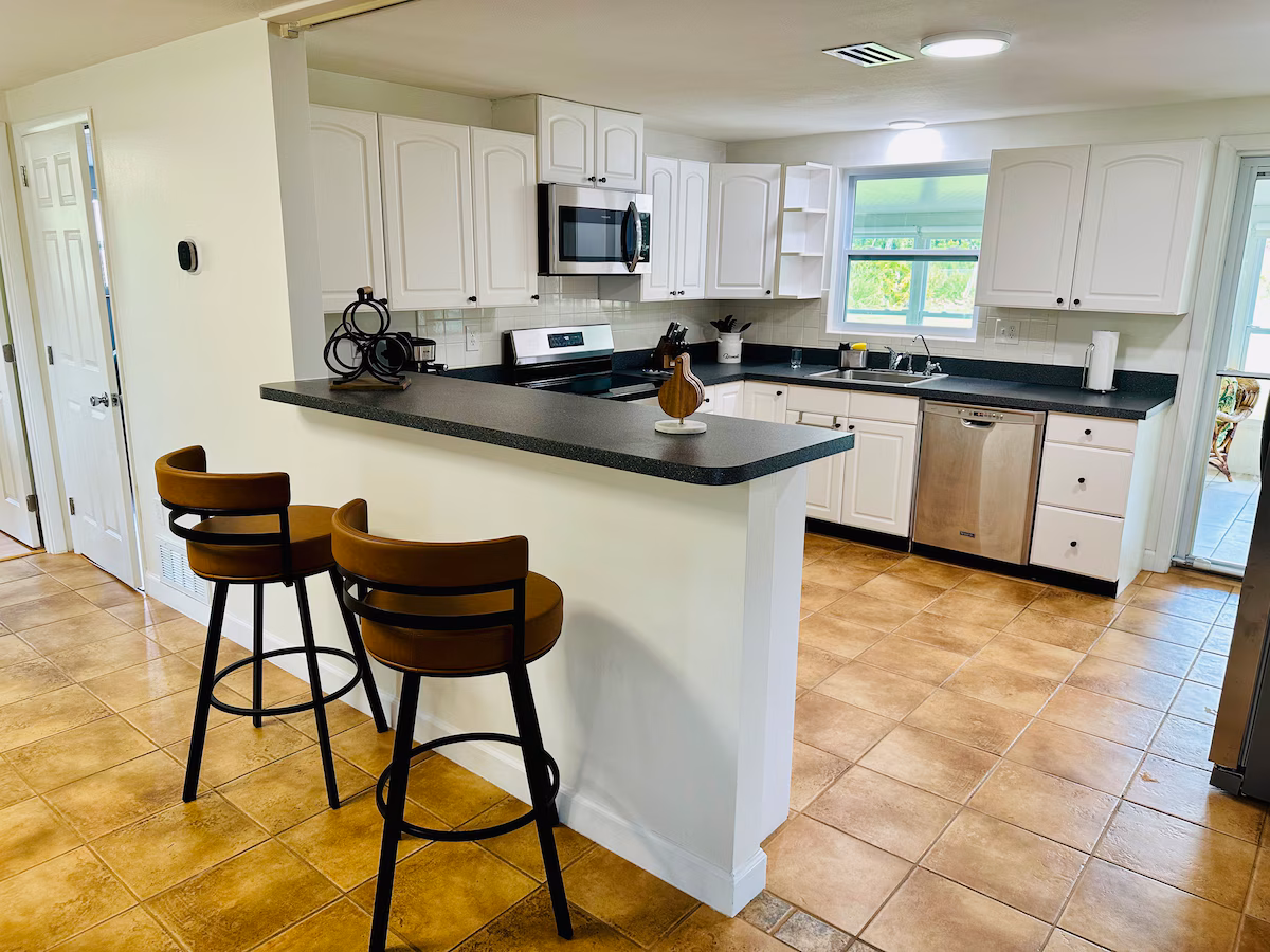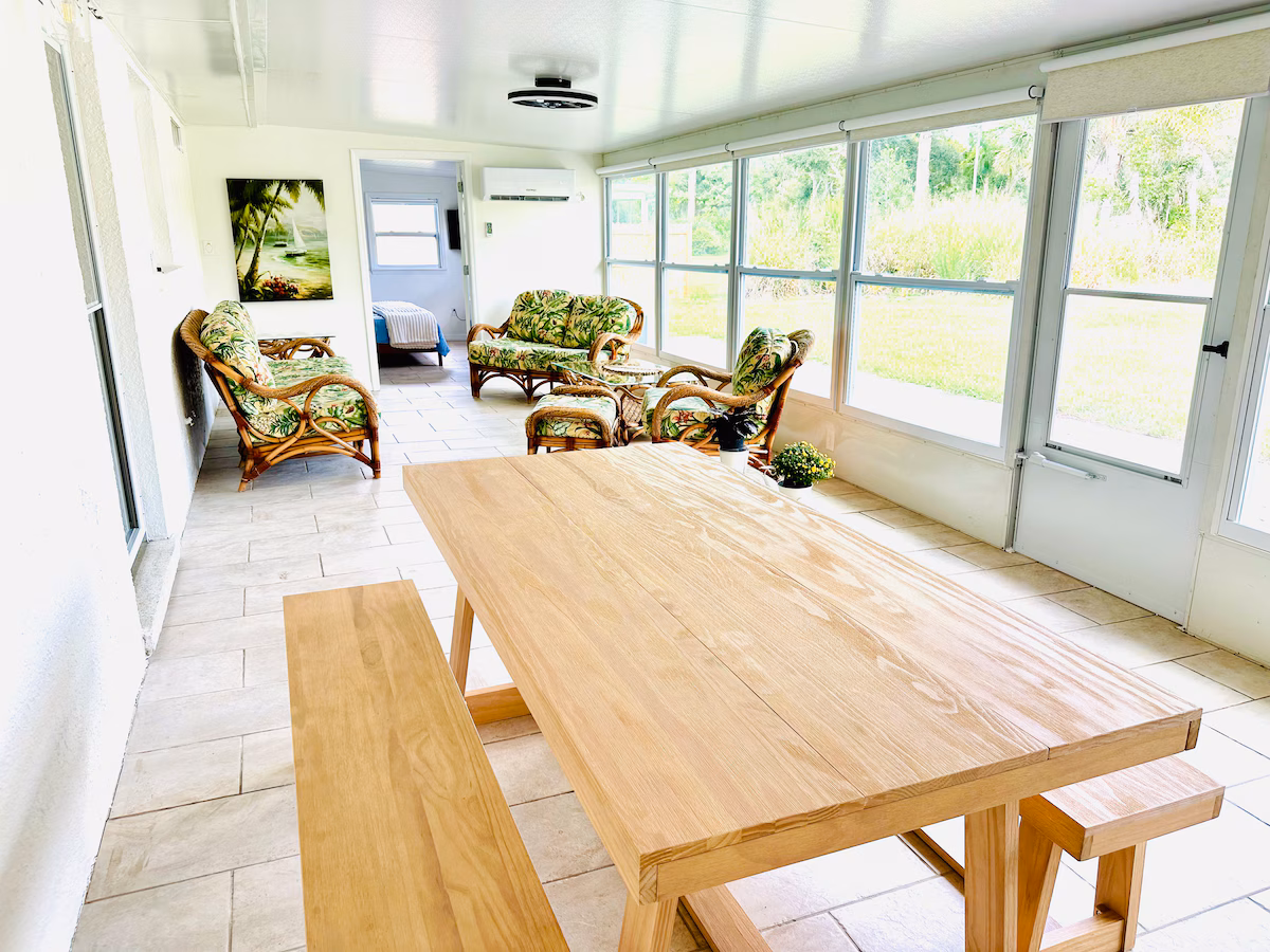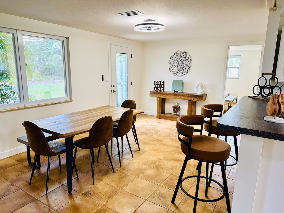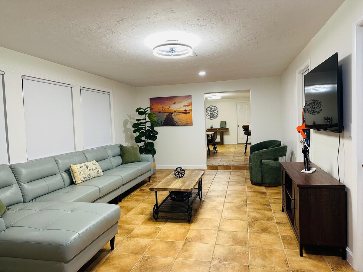 Linda’s Beach House in sunny Venice! Just 3 minutes from the beach, this 4-bedroom home is the perfect spot to kick back and relax. Families, couples, and even grandparents will love the big backyard with a playground, picnic area, BBQ, and fireplace. Inside, the sunroom is a cozy place to sip your morning coffee while looking out at the green field. With plenty of space and flexible sleeping options, it’s easy to settle in and make lasting memories here.